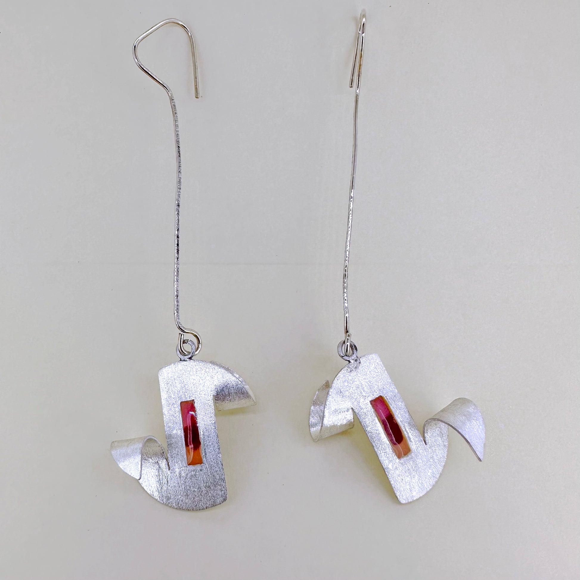 Twists and twirls and lines and swirls abound in these fine silver and plique a jour enamel earrings.